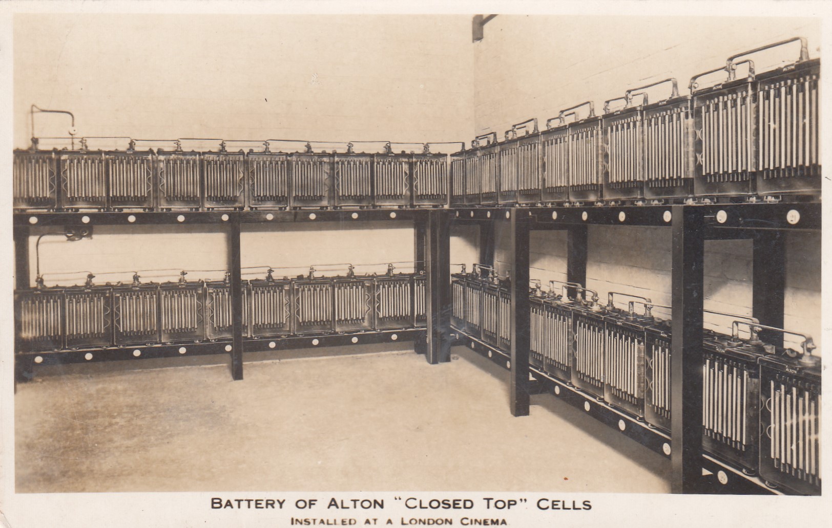 Alton Batteries were also in use across the United Kingdom, from Government & Local Authority Buildings, H.M. Armed Forces, Hospitals, Railway Companies, Telephone Exchanges*, The B.B.C., Country Houses and Cinemas (An example of which you can see above)